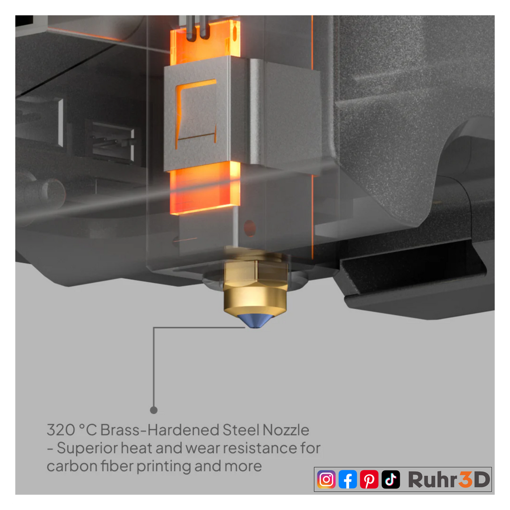 Der Centauri Carbon wurde für fortschrittliche Materialien entwickelt und ist mit einer 320 °C messinggehärteten Stahldüse und einer hervorragenden Kühlung in einer vollständig geschlossenen Kammer ausgestattet. Es ist auf kohlefaserverstärkte Filamente spezialisiert, mit denen Du starke, leichte und hitzebeständige Teile herstellen kannst, die sich ideal für Anwendungen in der Luft- und Raumfahrt, der Automobilindustrie und im Sportbereich eignen.