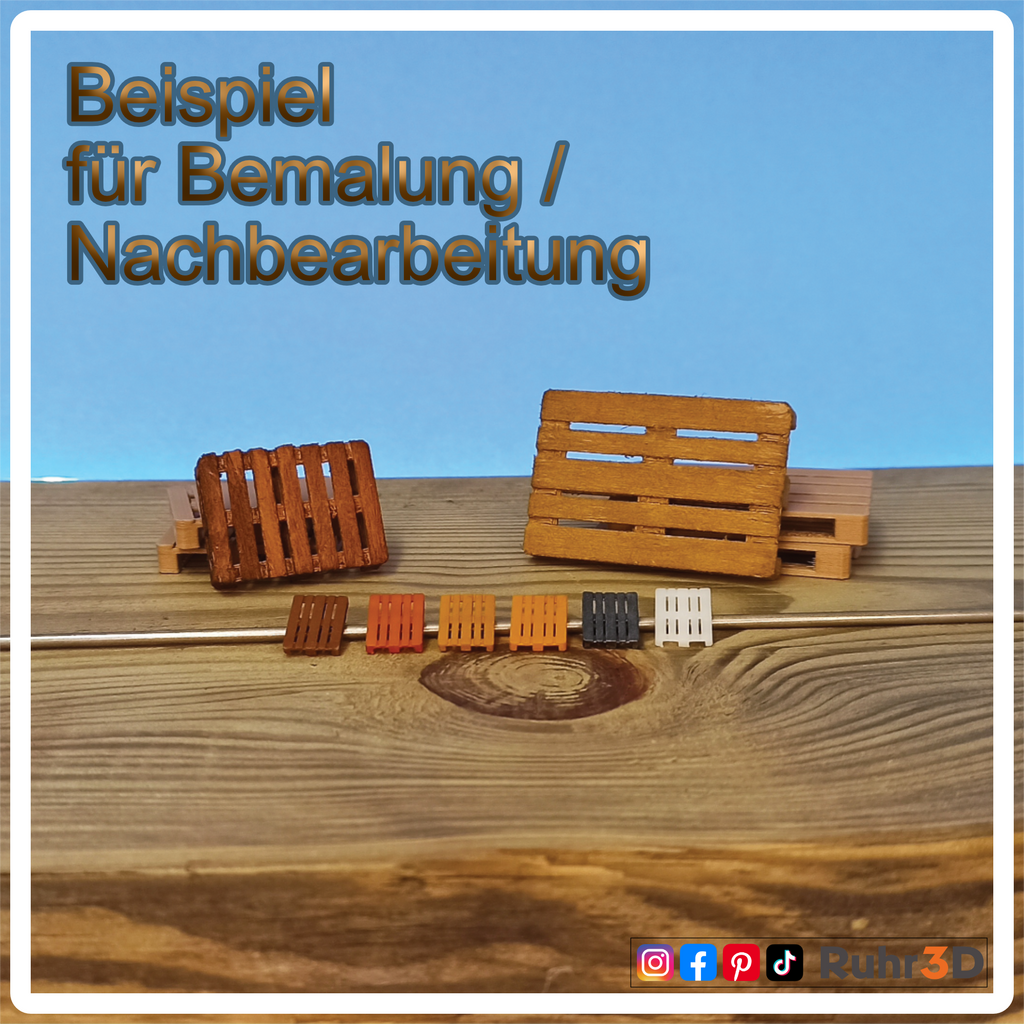 🚚 Du erhältst Modellbau Paletten die im Maßstab 1 zu 16, passend z.B. für Dein Modellauto, Dein Diorama, als Ladegut für Transport / Logistik, die Szenografie uvm. Die Paletten überzeugen mit einer einzigartigen, holzähnlichen Haptik die wie originale Paletten aus echtem Holz erscheinen. Haptik sehr nah an echtem Holz.