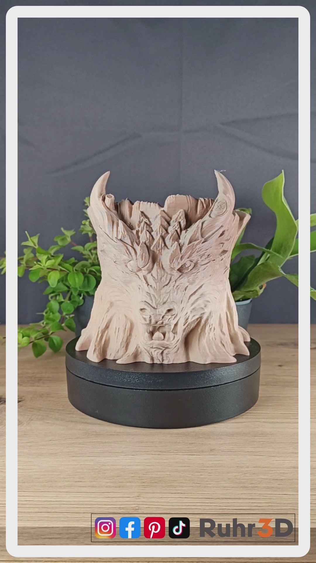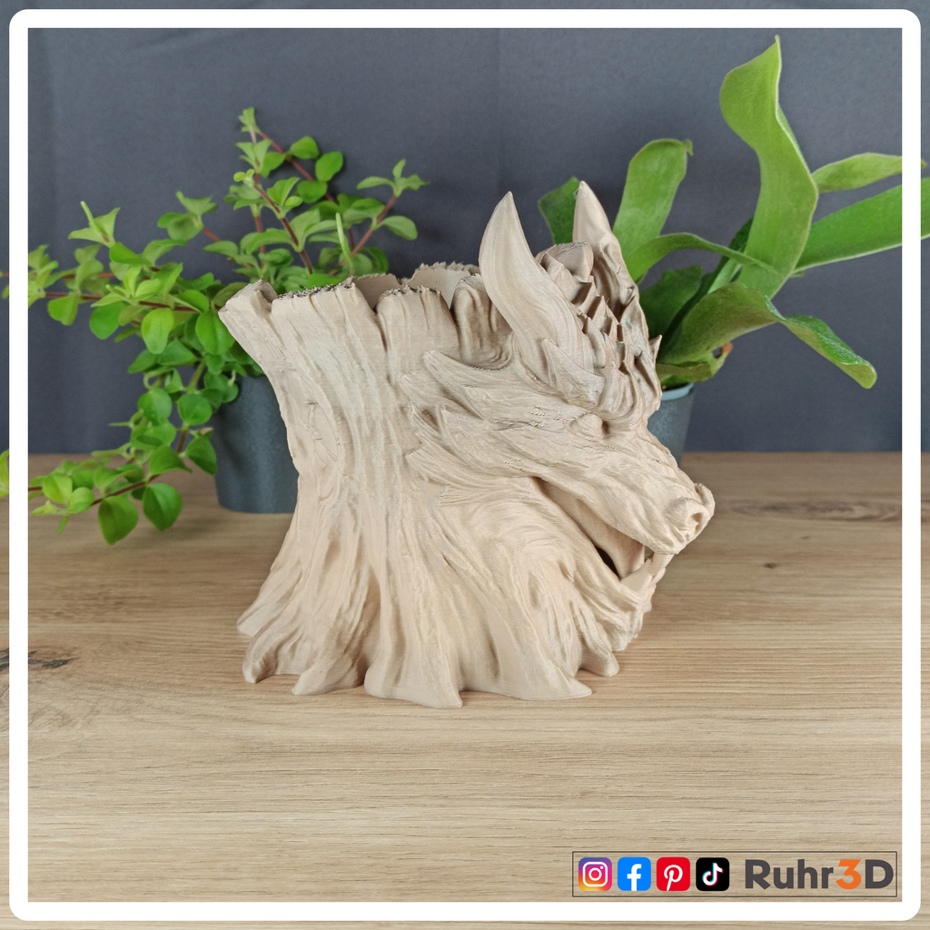🌳 Entfessle den Zauber des Uraltern in deinem Zuhause mit dem Grove Keeper, einem 3D-gedruckten Drachenkopf-Übertopf, der wie ein wahrer Wächter des Waldes über Deine Pflanzen wacht. Mit komplizierten Schuppendetails, heftigen Hörnern und einer moosigen, organischen Ästhetik verbindet der Hainwächter Fantasie und Natur zu einem atemberaubenden Ausstellungsstück.